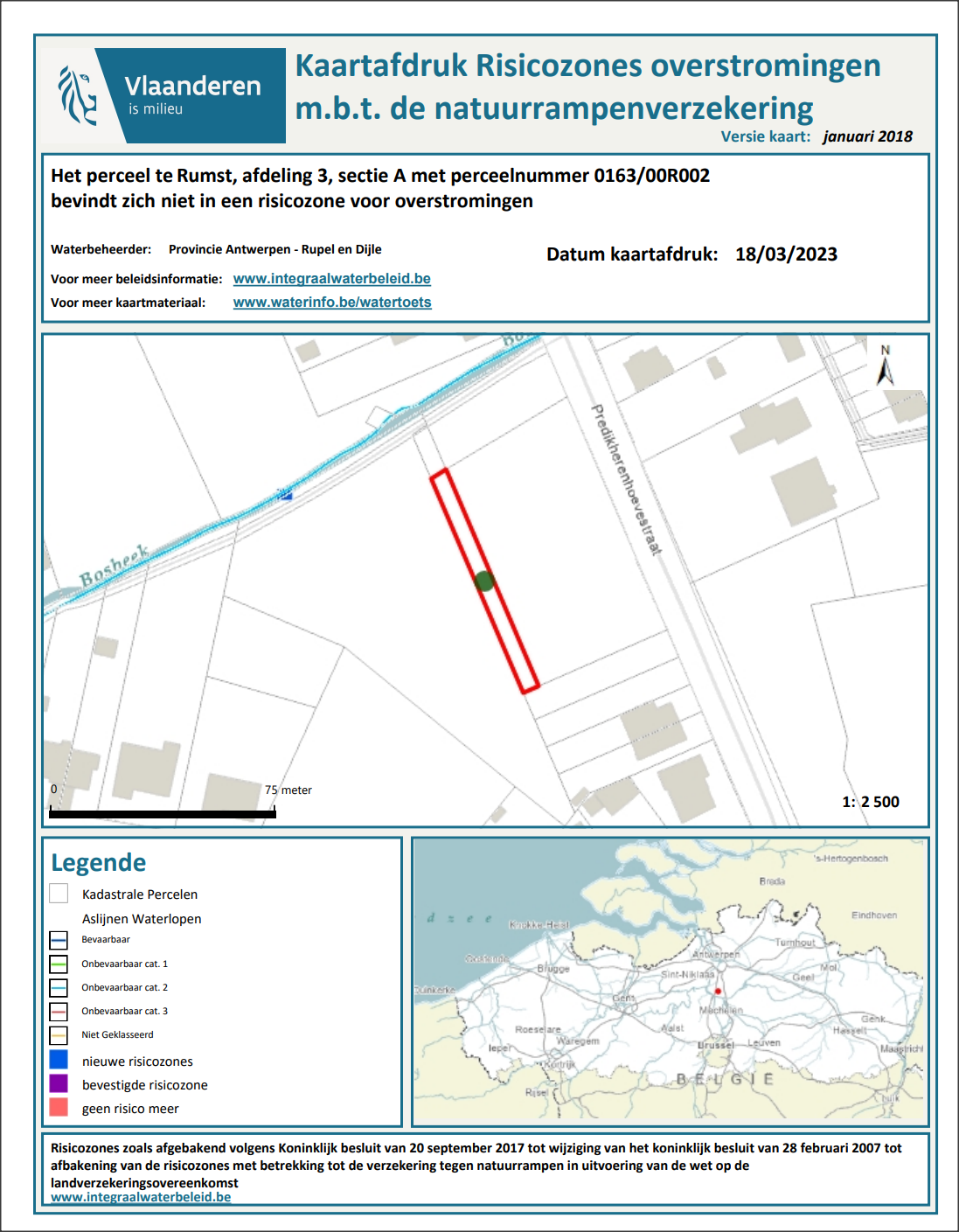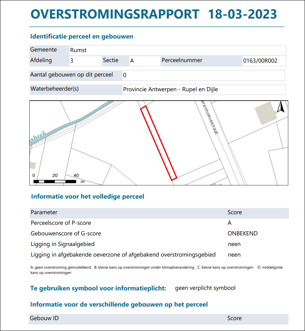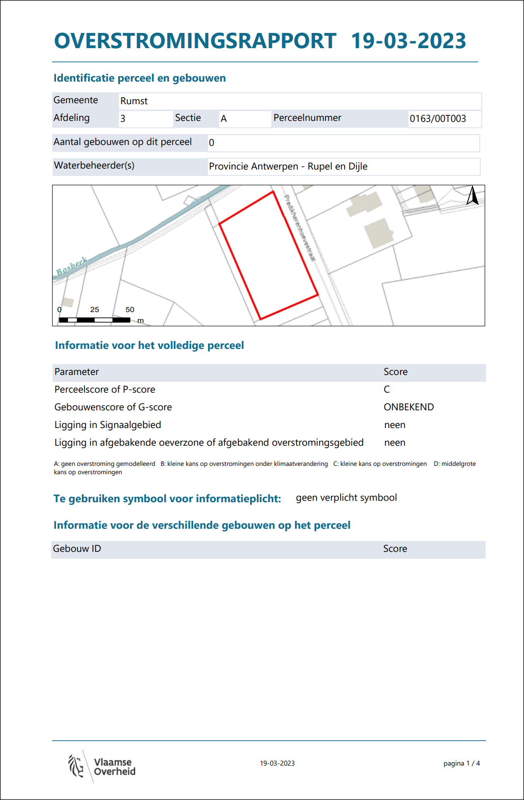 Het overstromingsrapport vindt u door op het perceel te klikken in de Giskaart ( zoek op "Predikherenhoevestraat Rumst " ):  https://www.waterinfo.be/informatieplicht