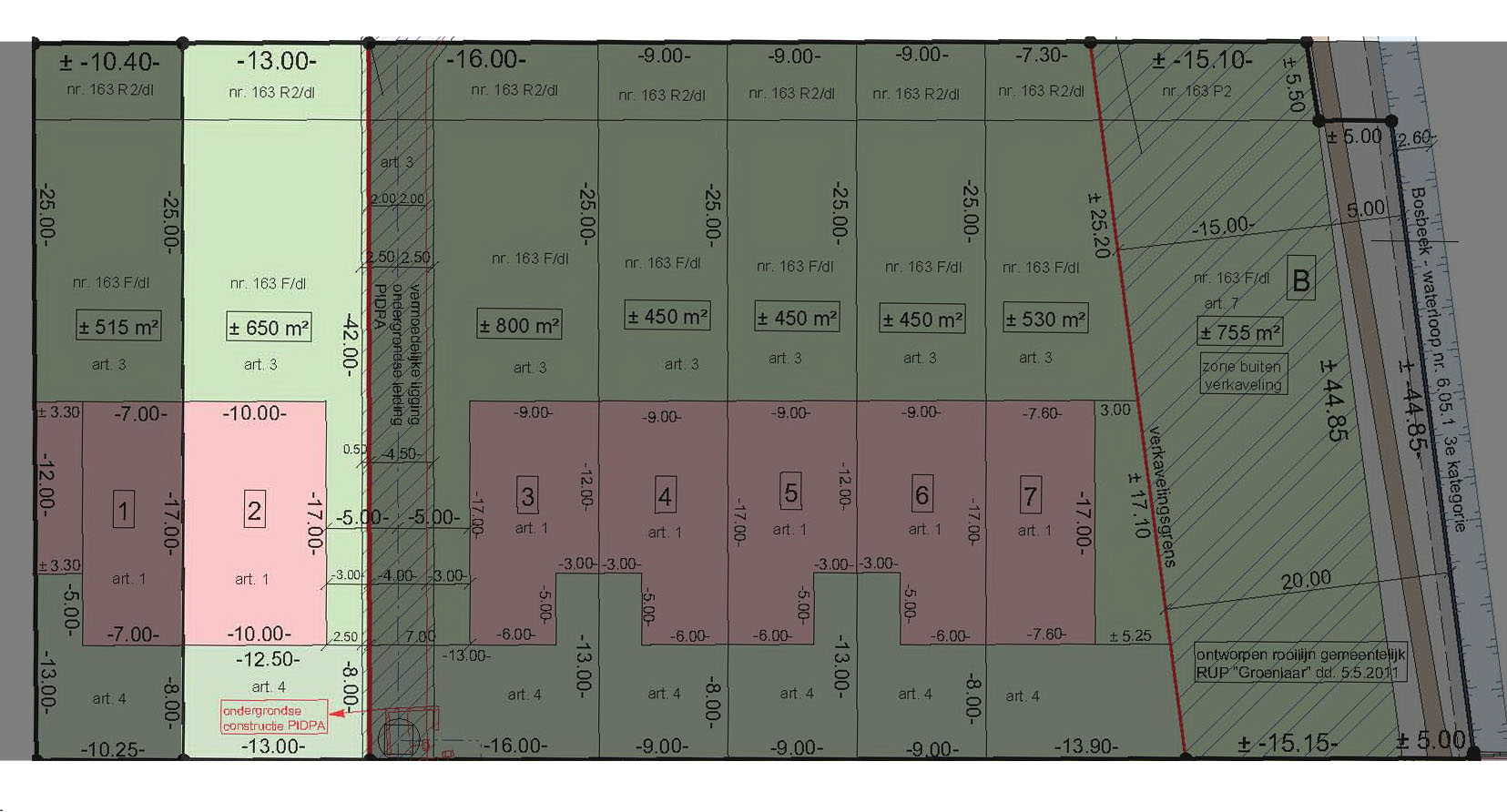 - Bestemming achterstrook van 5 meter diep (perceel 163R2) in gewestplan Woongebied en Agrarisch gebied