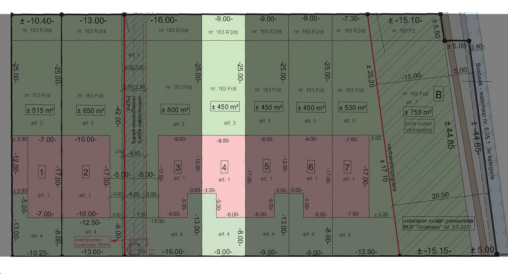 - Bestemming eerste 45 meter diepte (perceel voorheen 163F, nu 163T) in gewestplan Woongebied