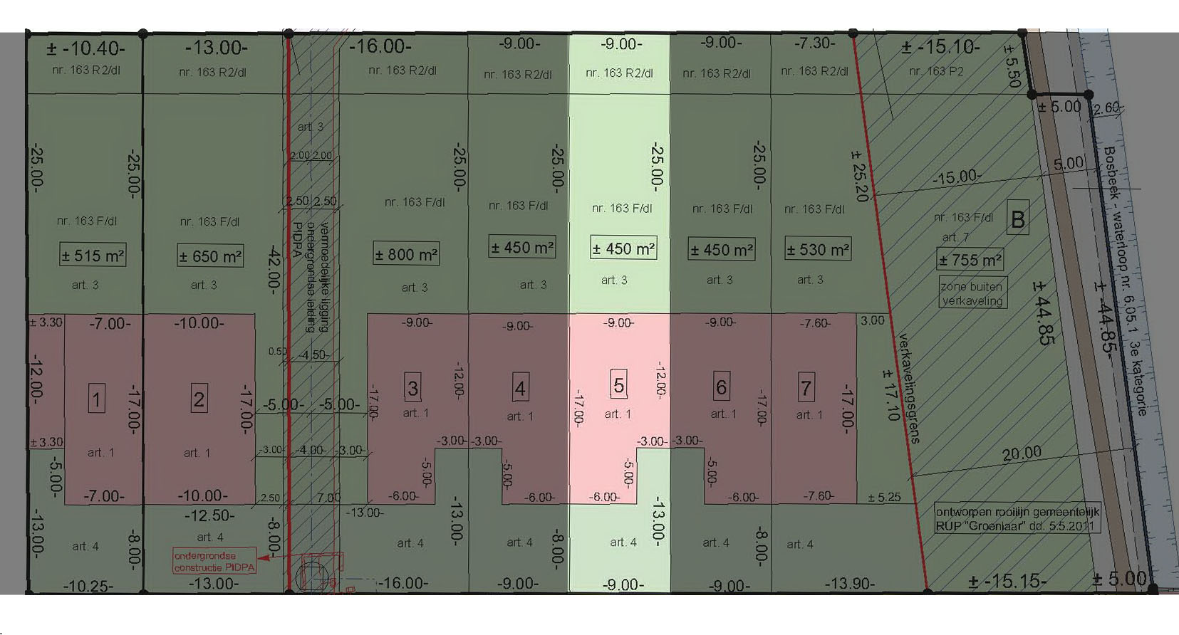 - Bestemming eerste 45 meter diepte (perceel voorheen 163F, nu 163T) in gewestplan Woongebied