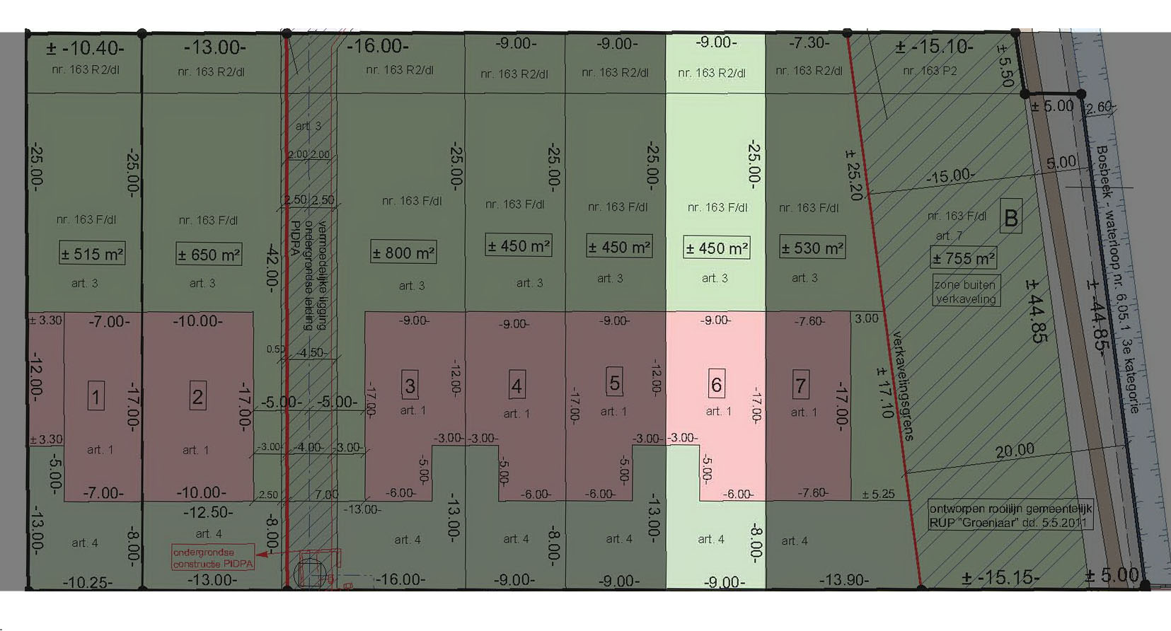 - Bestemming eerste 45 meter diepte (perceel voorheen 163F, nu 163T) in gewestplan Woongebied